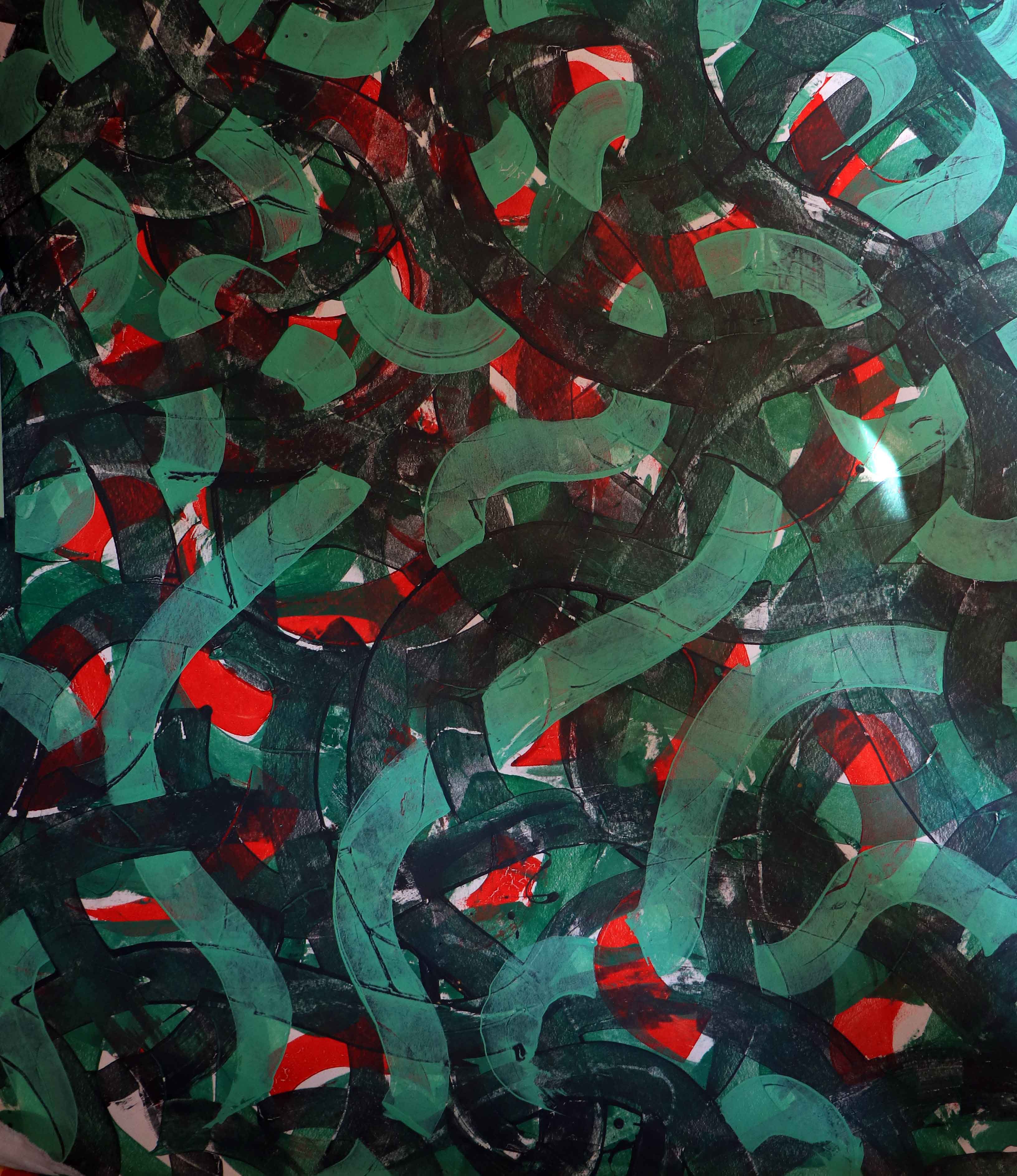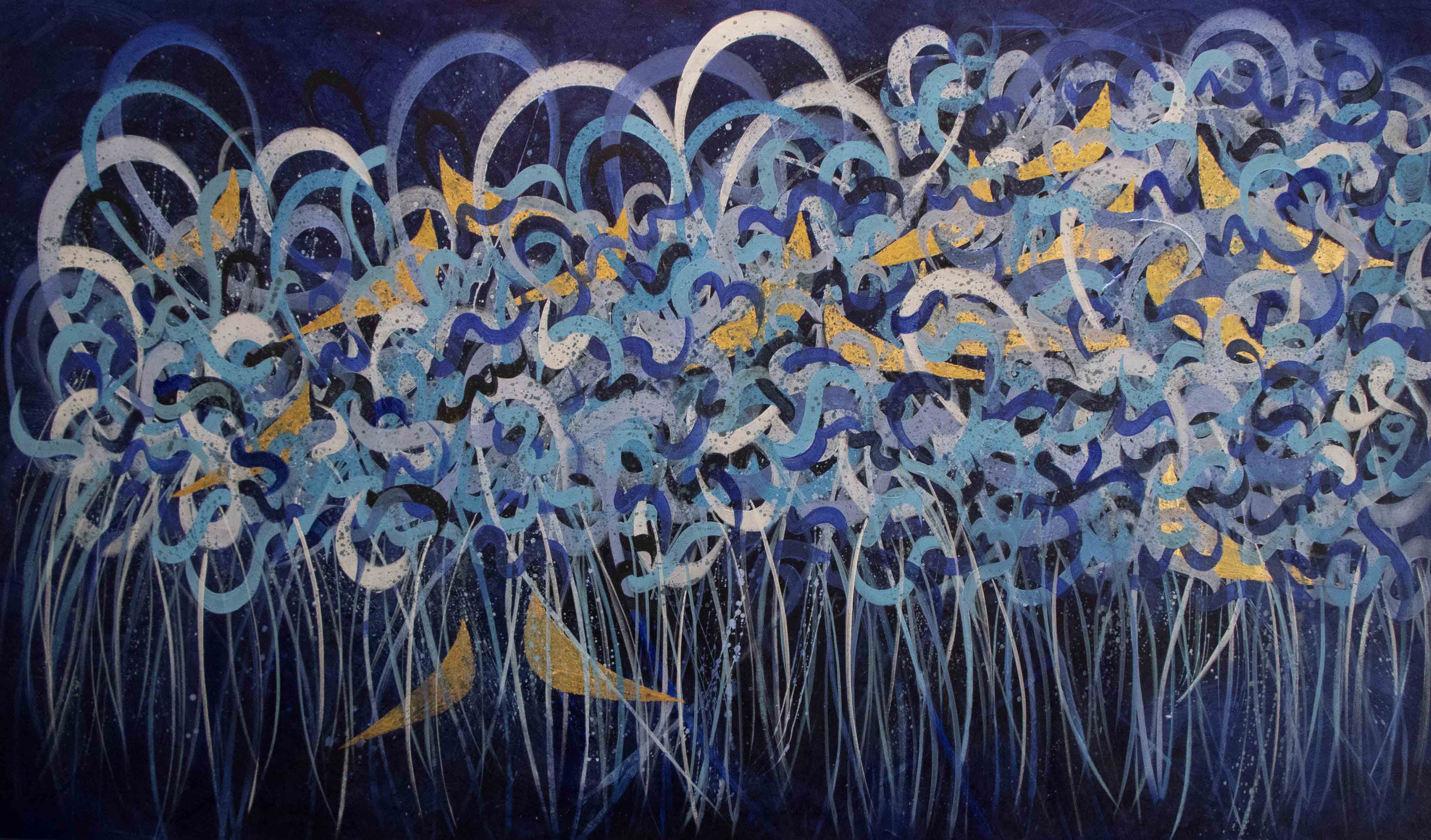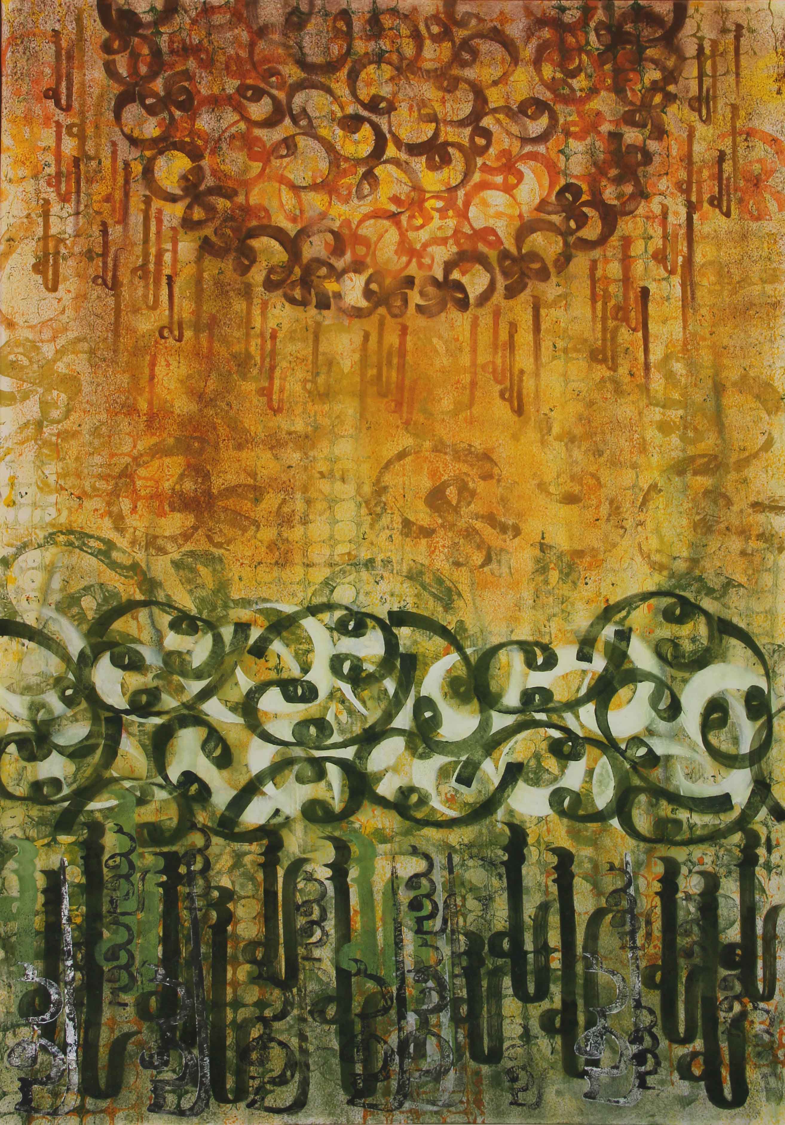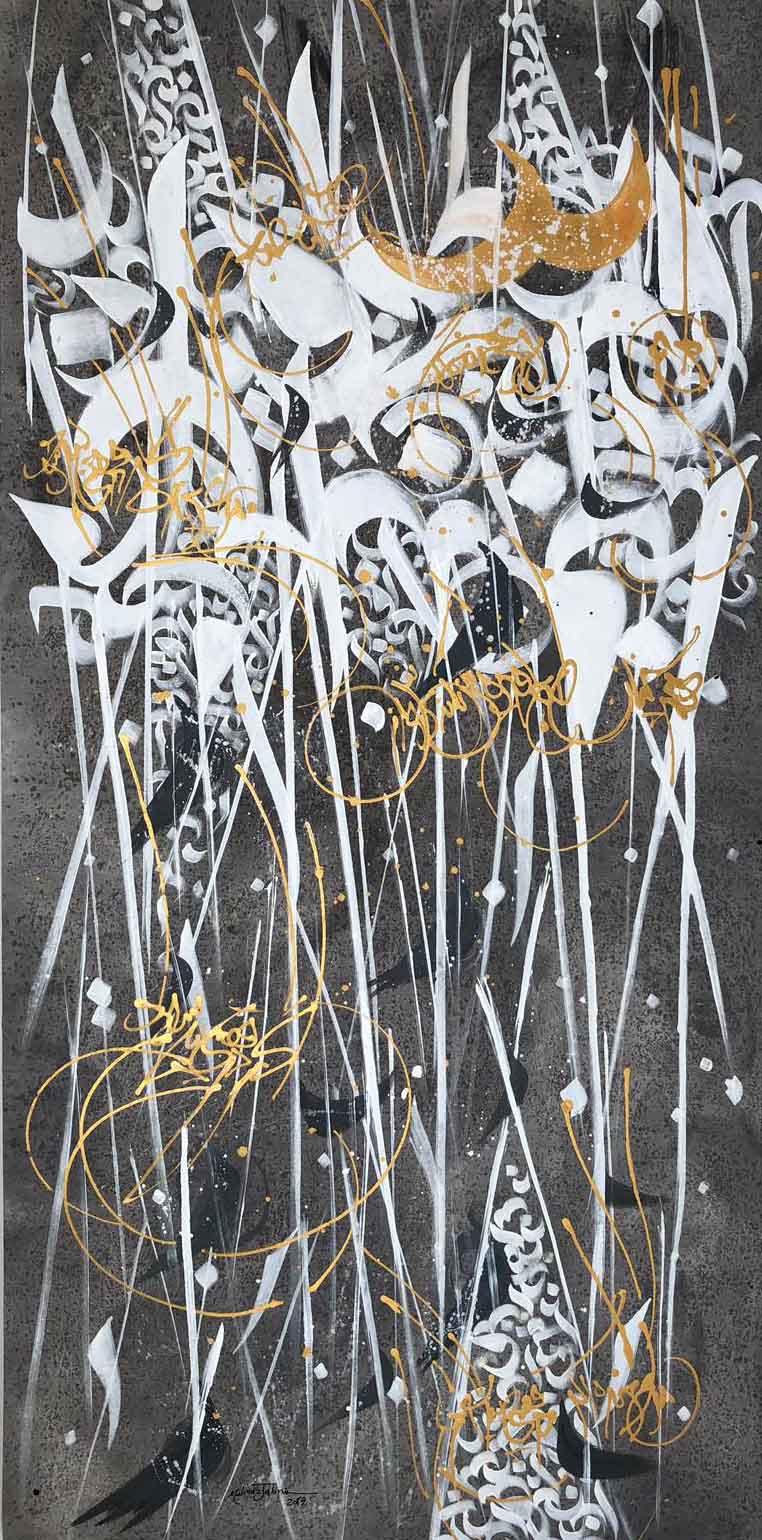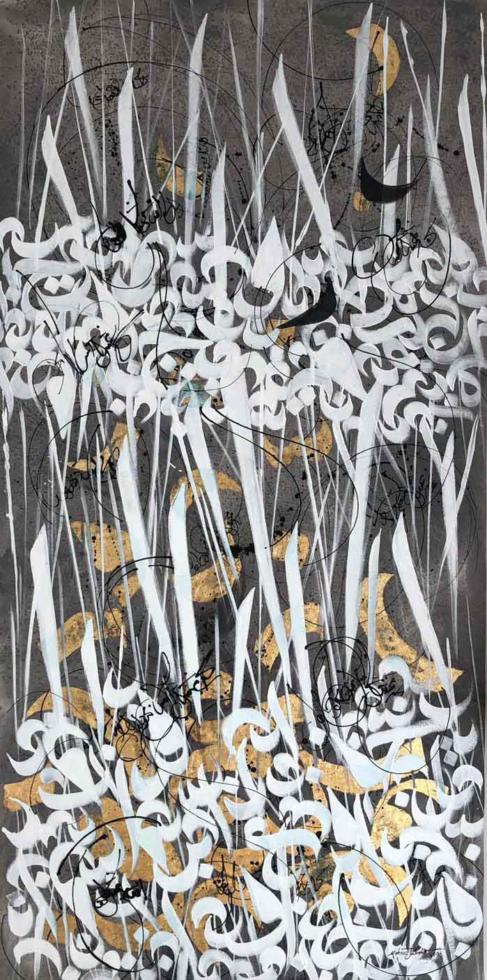 Using repeated letterforms, this series seeks a connection between calligraphy and nature. It invites the viewer to momentarily step away from the acceleration of mechanized life and engage with rhythm, stillness, and beauty. The encounter with these works is shaped not through reading, but through seeing, sensing, and synchronizing with the visual cadence of the image.