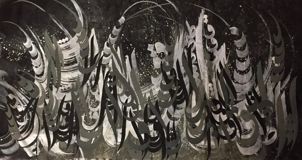 The alphabet used in these works is derived from Pahlavi script, one of the oldest historical writing systems of Iran. The predominantly circular forms of its letters resonate with the concept of Sama, creating a visual language that unites motion, writing, and meaning, and transforms the works into contemplative, ritualistic experiences.