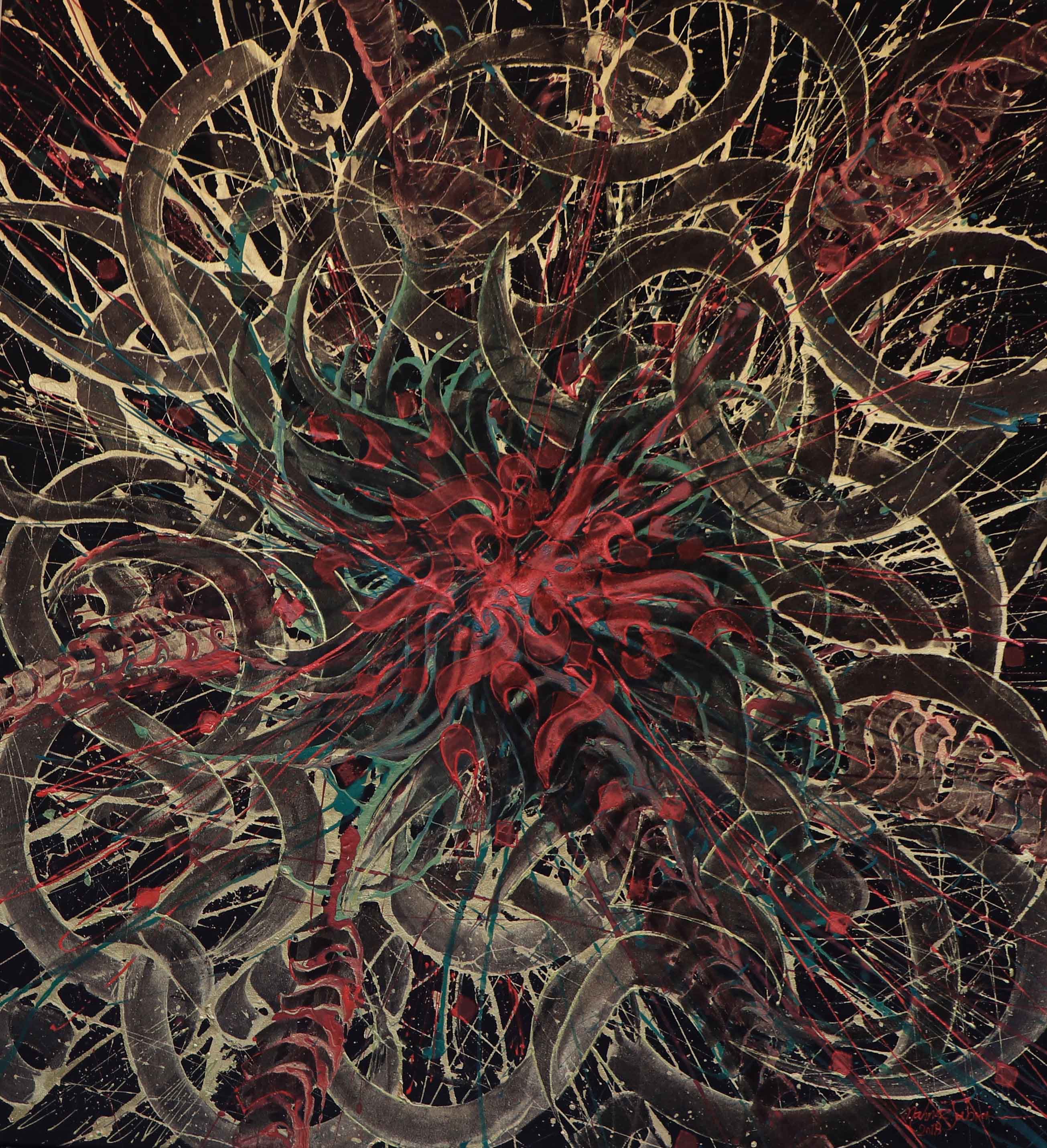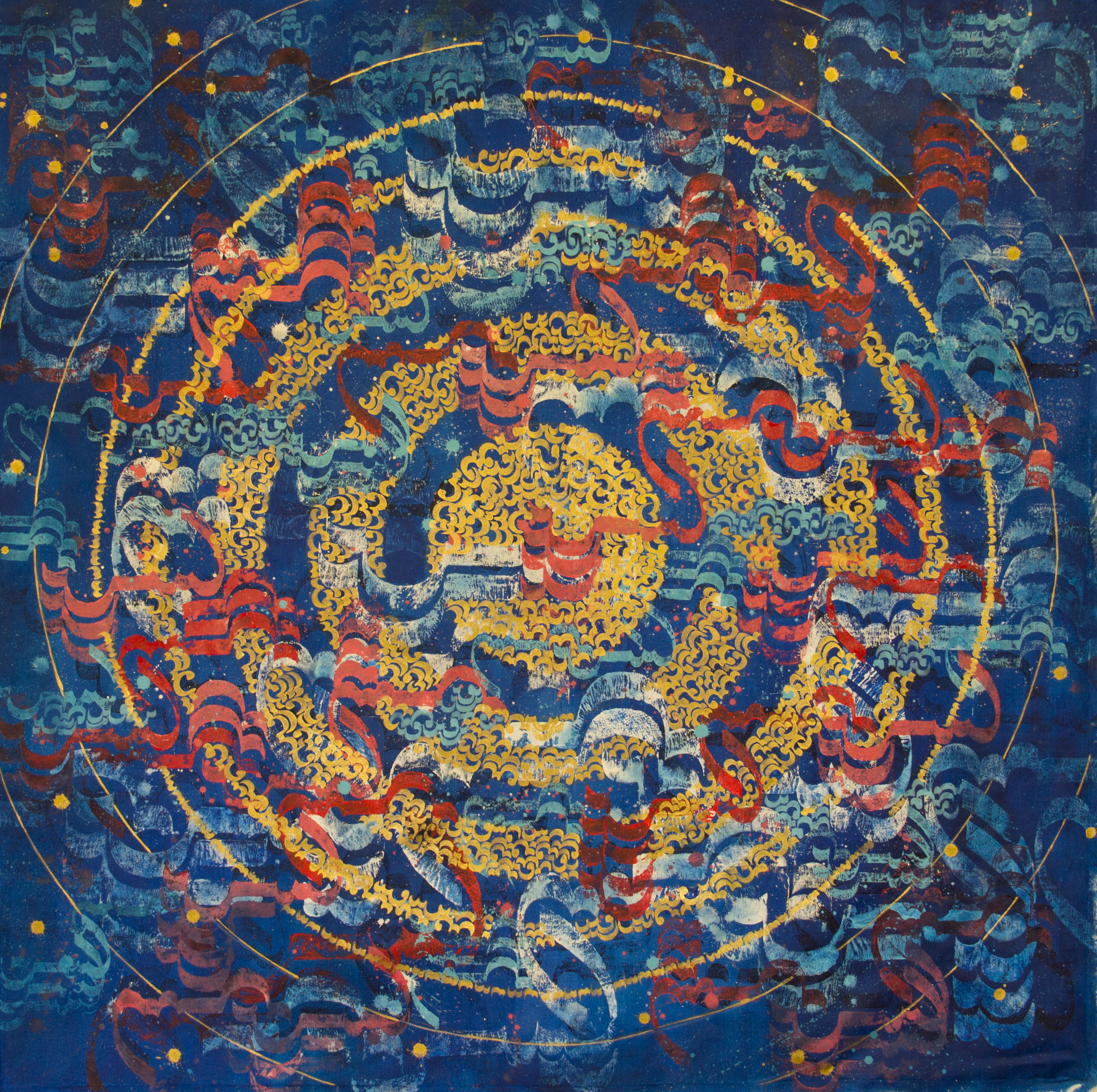 In this series, movement and dance are central concerns—understood as a fluid, continuous flow that is in constant motion. This visual dynamism reflects an ongoing spiritual journey, one without a fixed beginning or end, unfolding through perpetual rotation and rhythm.